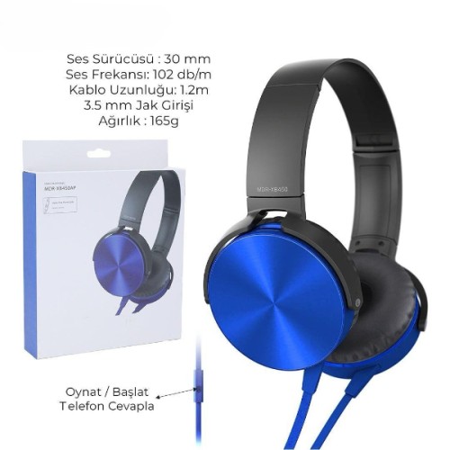 Kablolu Kulaklık Mavi Renk